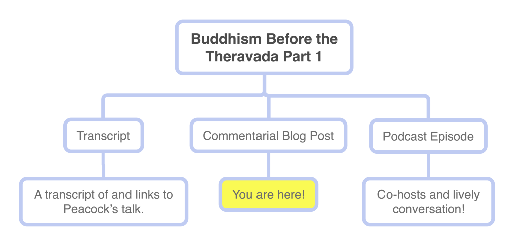 [^1]: Quotes in this post are from Peacock’s talk “Buddhism Before the Theravada, Part 1” unless noted otherwise.